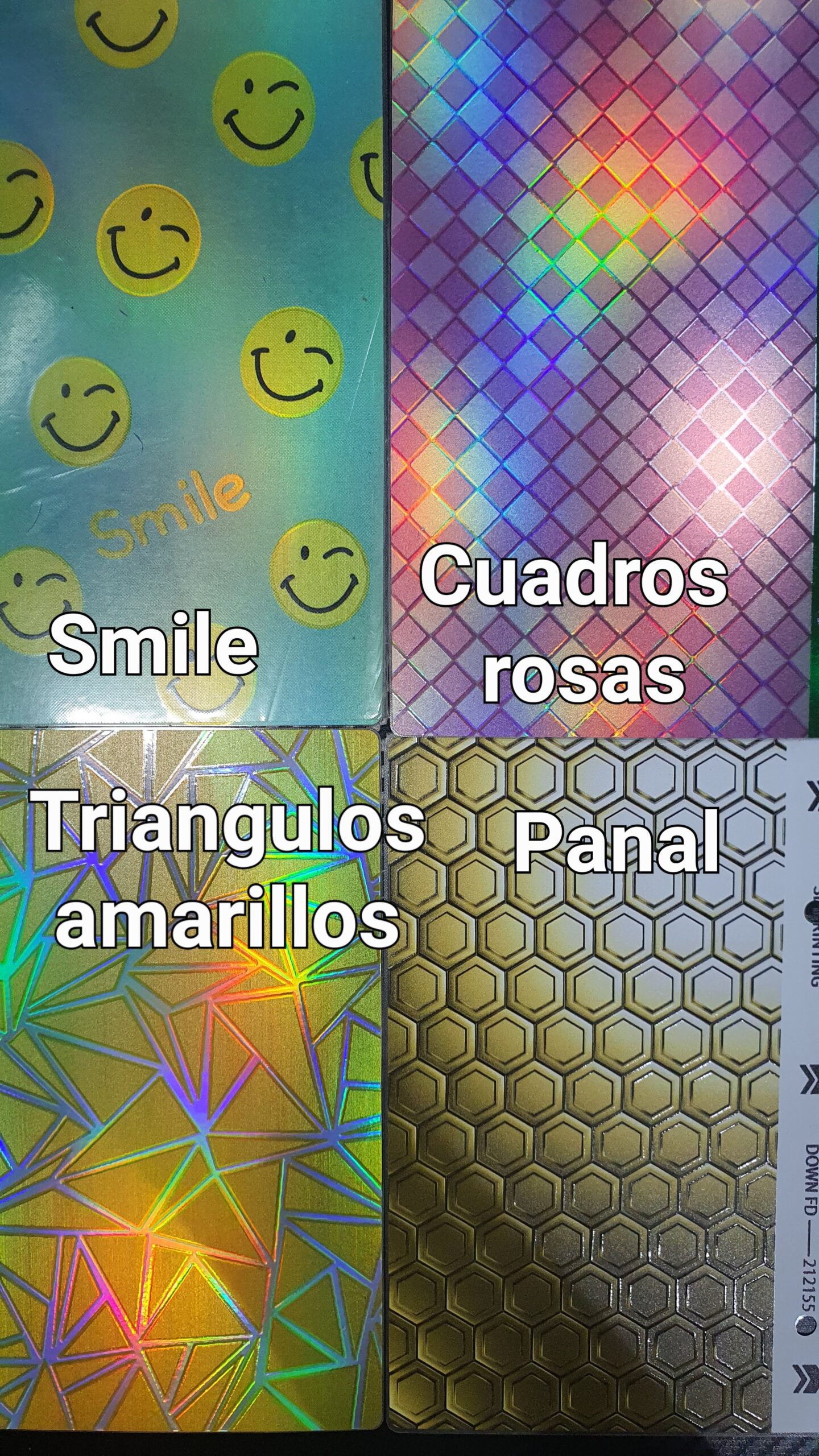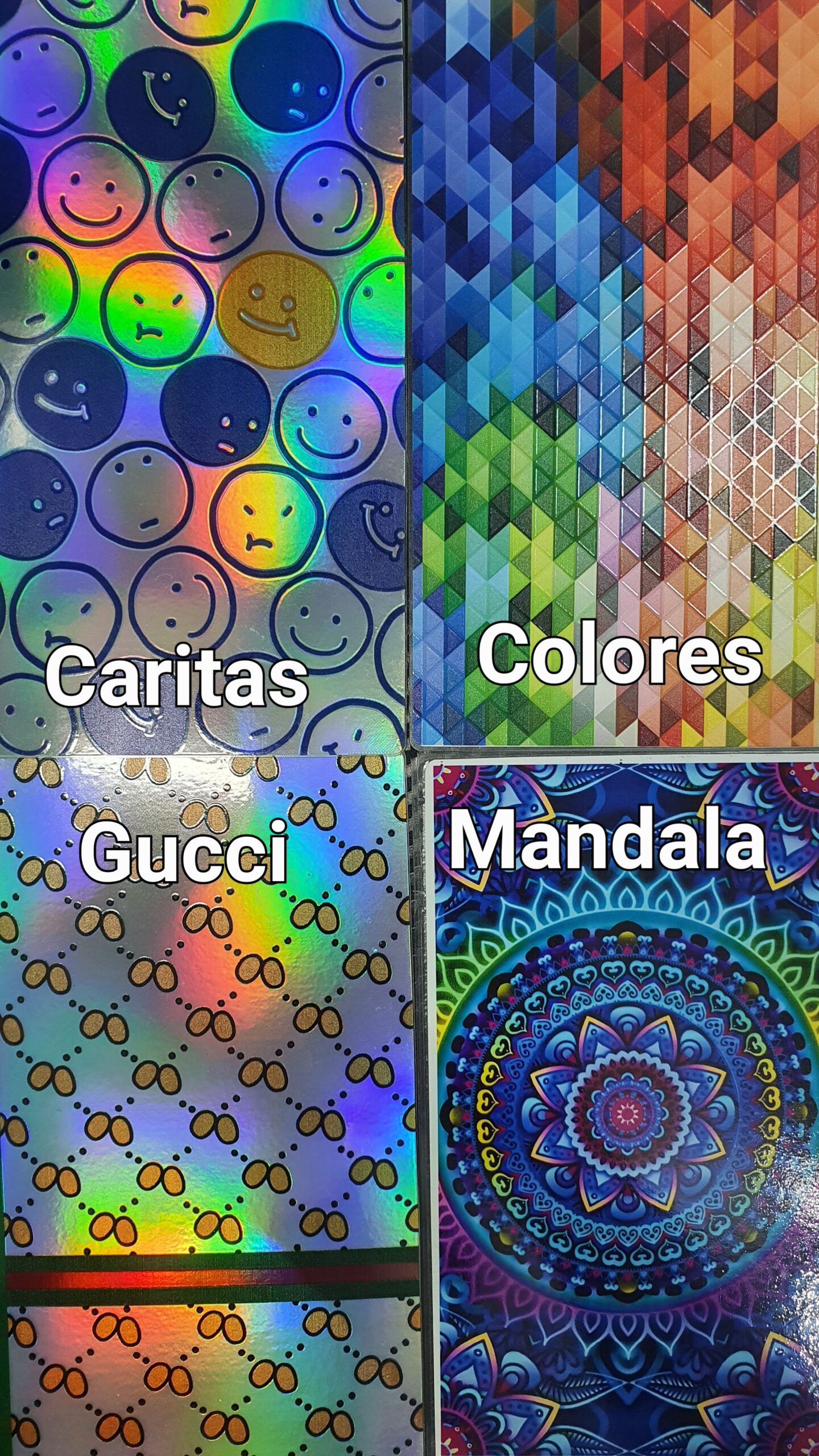 | Diseño | Angulos, Ladrillos, Nube, Cohete, Prismas, Colorful, Escamas, Dorado, Smile, Cuadros rosas, Triangulos amarillos, Panal, Arcoiris, Sirena, Rosa, King, Umbrella, Pikachu, Nike, Santa, Batman, Nets, Pavorreal, Lago, Marmol azul, Caritas, Colores, Gucci, Mandala |